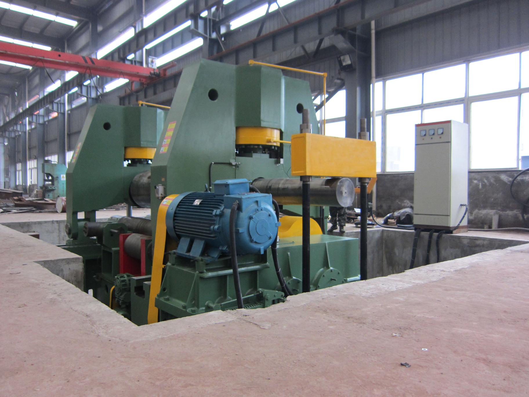 T3SNC-12T3000W Plate Bending Machine is a kind of double pinch plate bending machine. The top roller is hydraulic driving. The top roller is vertically and horizontally adjustable, and the two lower rollers are fixed. All of the rollers in alloyed steel are induction hardening and heat treatment. All of the rollers will be grinded and polished after induction hardening treatment.