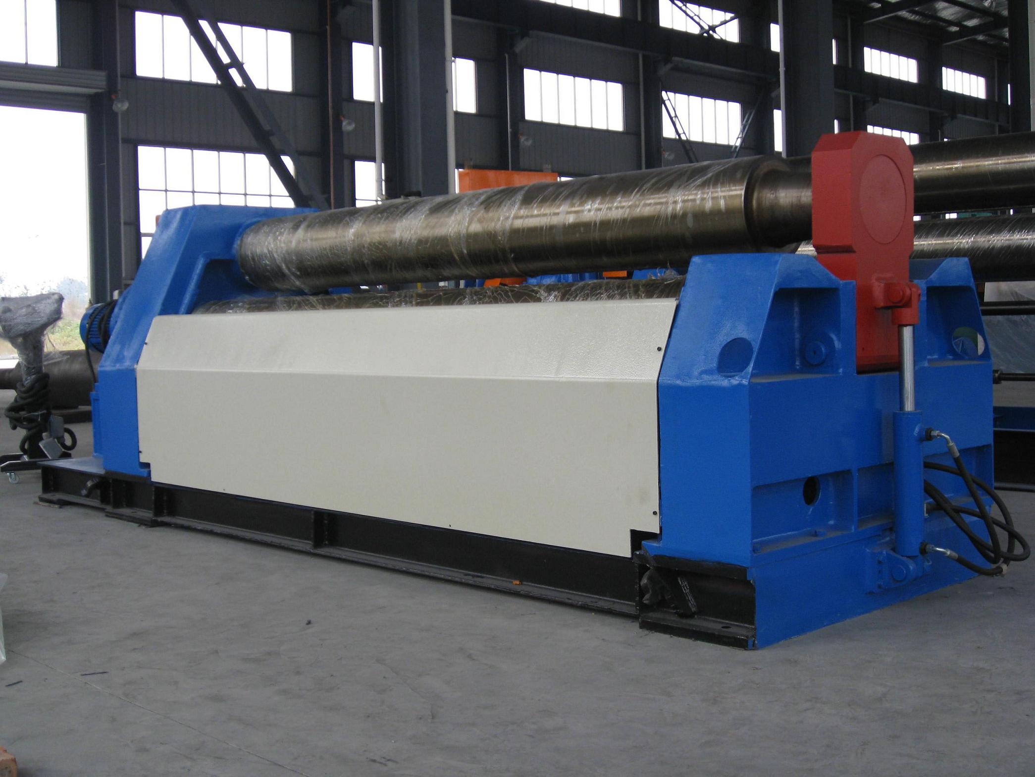 T4-12T3000W Plate Bending Machine is a type of double pinch plate bending machine. Each of the rollers is separate driven. Rollers rectilinear slide ways coated with antifriction material, no maintenance, suit to heavy duty loading, smooth and stable positioning. Spherical roller bearings are equipped on the rollers. All of the rollers in alloyed steel are induction hardening and heat treatment. All of the rollers will be grinded and polished after induction hardening treatment.Parameters