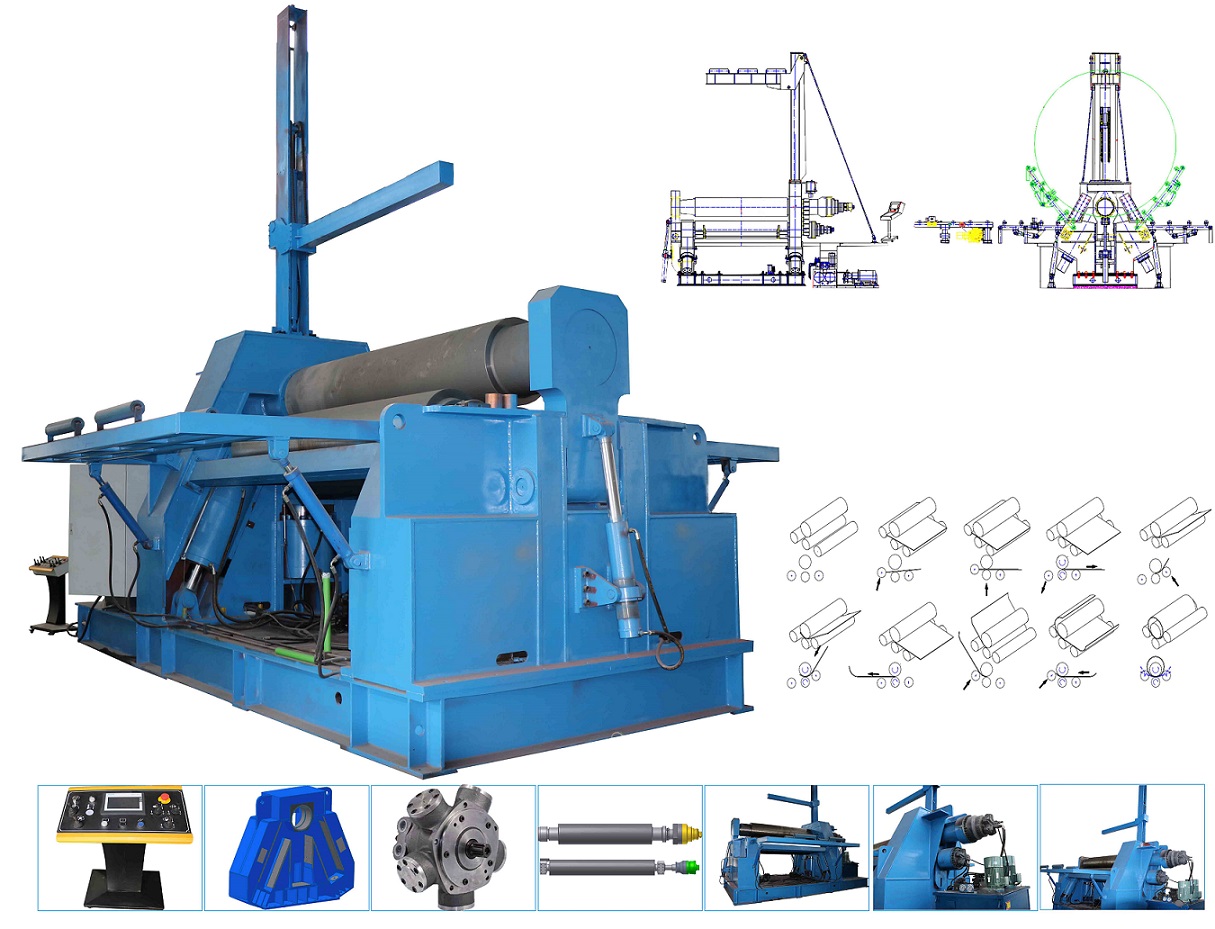 --side rollers and bottom rollers variable tilting controlled, positive or negative