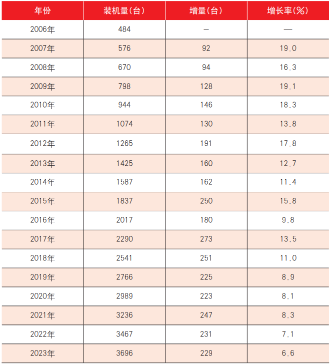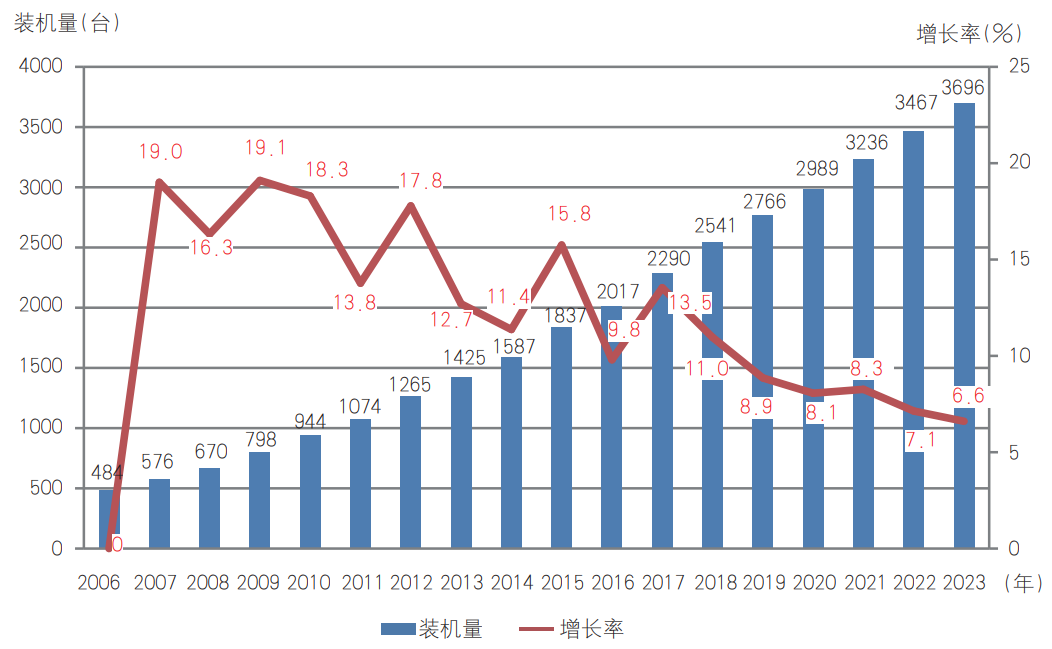 表1 2006~2023年中國內(nèi)地機組式柔性版印刷機裝機量及增長率