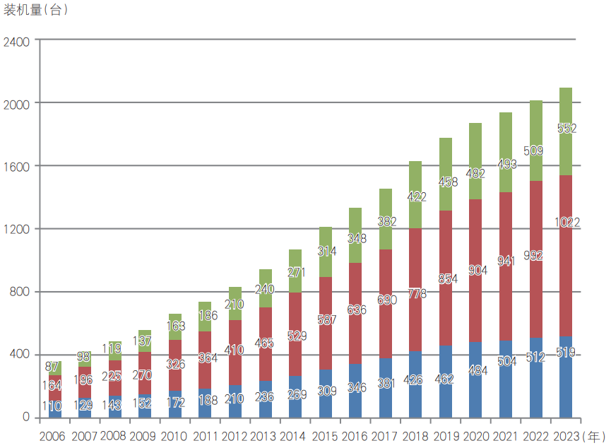 (2)本次調(diào)查僅統(tǒng)計分析了機組式柔性版印刷機的裝機量及增量情況,衛(wèi)星式柔性版印刷機和層疊式柔性版印刷機未在統(tǒng)計分析范圍之內(nèi)。并且,未統(tǒng)計用于涂布上光的單色柔性版印刷機組。